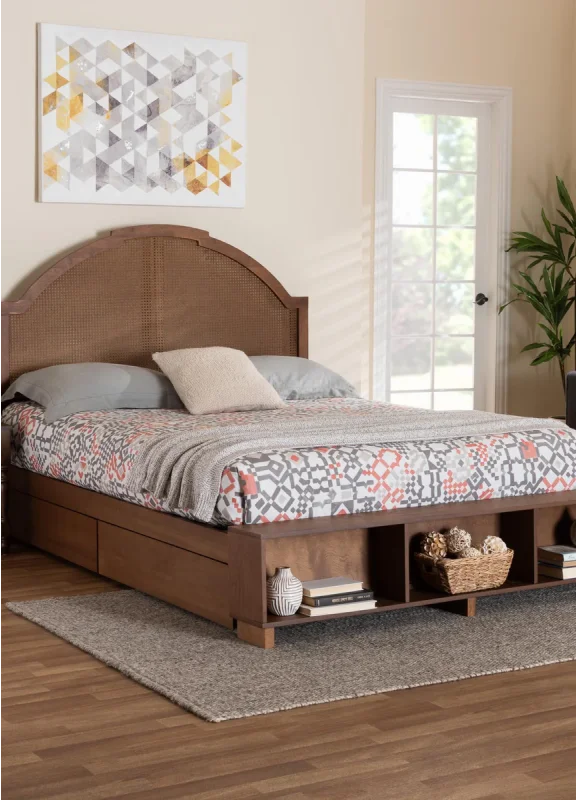 Afton Queen Wood Platform Bed – Japandi Style with Slat Support No Box Spring