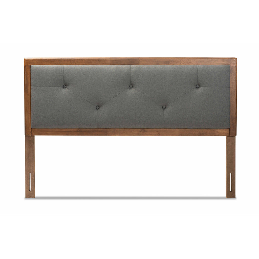 Abner Modern and Contemporary Transitional Dark Grey Fabric Upholstered and Walnut Brown Finished Wood Queen Size Headboard