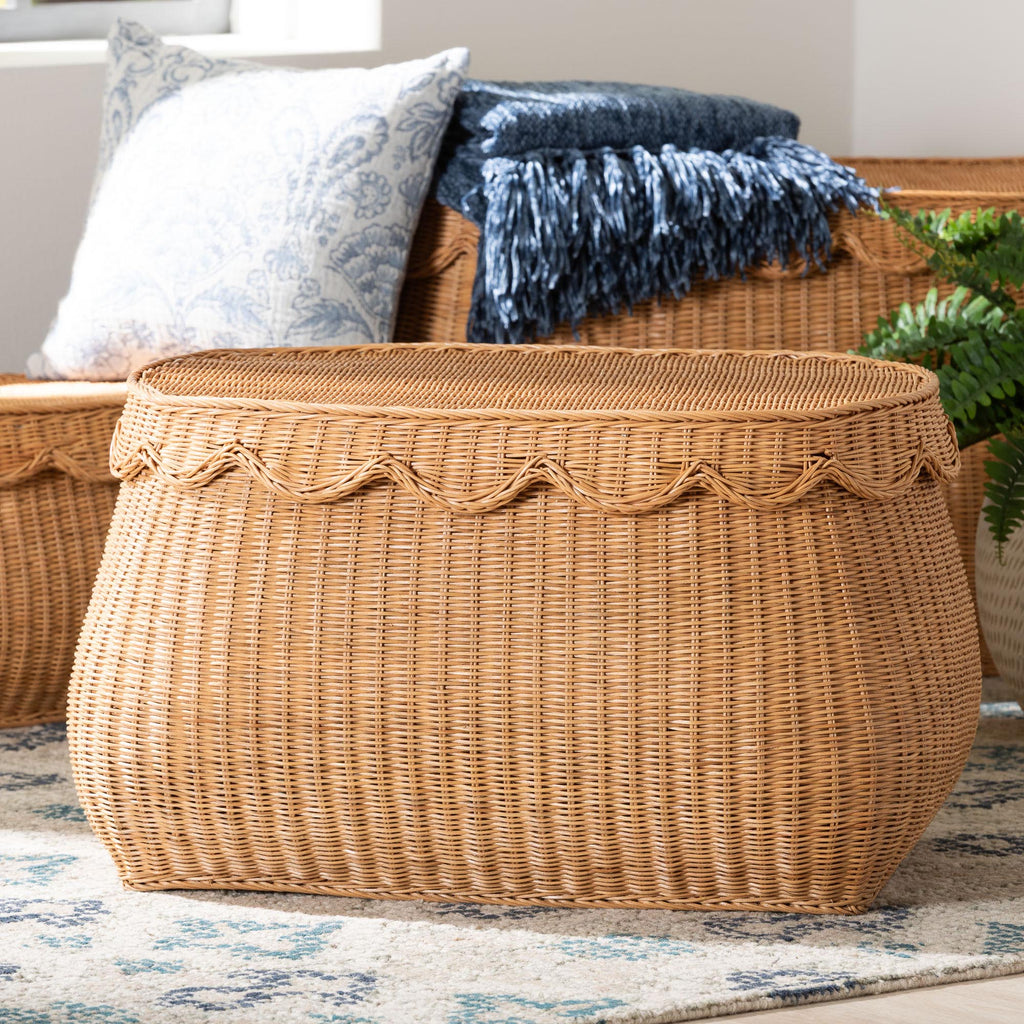 Meet the needs of your space with the whimsical beauty of the Ayleen storage basket. Made in Indonesia, this bohemian piece is handcrafted from sustainably sourced natural rattan. The top is effortlessly removed to reveal a spacious storage compartment perfect for decluttering and organizing busy areas of your home. The Ayleen will arrive fully assembled and features a lovely scalloped rattan edge that lends vibrant geometric allure. With a flared bell silhouette, the Ayleen storage basket is pleasant addition to any setting.