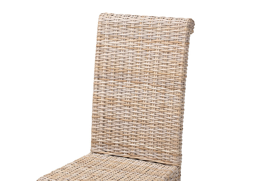 Accompany meals with the delightful rustic refinement of the Santiago dining chair. this bohemian piece is comprised of a sturdy wood frame wrapped in natural rattan by skilled artisans. Its tall, rolled backrest offers a cozy embrace while striking a pose of timeless elegance. The Santiago will arrive fulassembled and utilizes tapered legs for excellent and support in sleek design. Carrying the essence of exotic serenity, the Santiago dining chair transforms the mood of any occasion.