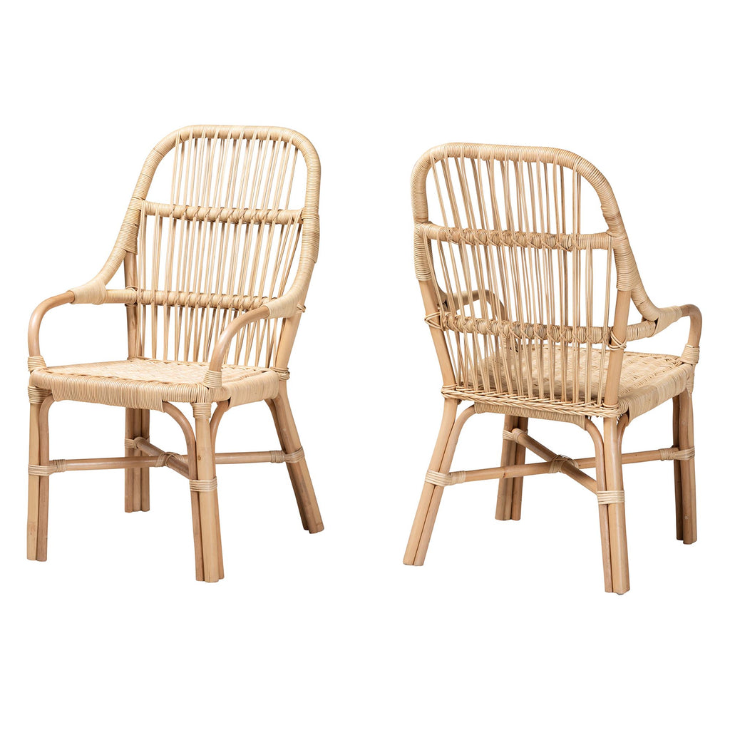 Enchant every meal with an atmosphere of paradise with the remarkable Sumatera dining chair. Made in Indonesia, this bohemian piece is entirely handcrafted from natural rattan. Its rounded backrest is wrapped in woven rattan rods that lend a unique, openwork display while creating a smooth embrace. The Sumatera will arrive fully assembled and features convenient armrests to encourage casual relaxation. Angled legs add timeless charm, making the Sumatera dining chair a subtle yet captivating addition to any dining space.