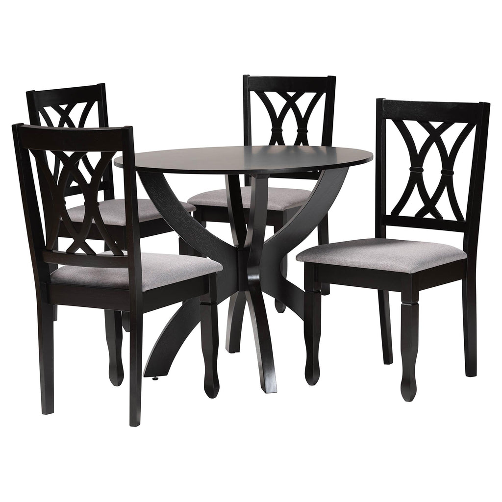Baxton Studio April Modern Grey Fabric and Dark Brown Finished Wood 5-Piece Dining Set