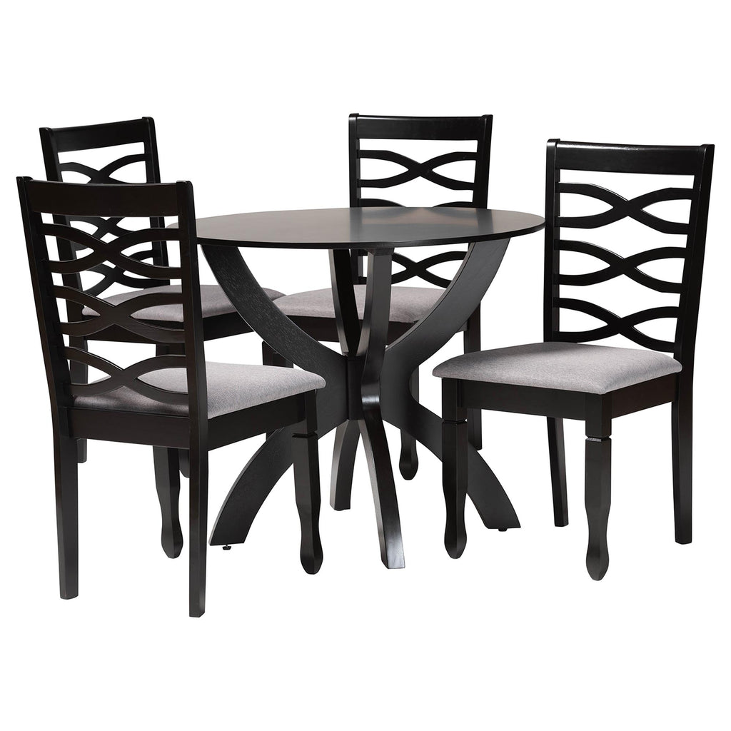 Baxton Studio Aspen Modern Grey Fabric and Dark Brown Finished Wood 5-Piece Dining Set