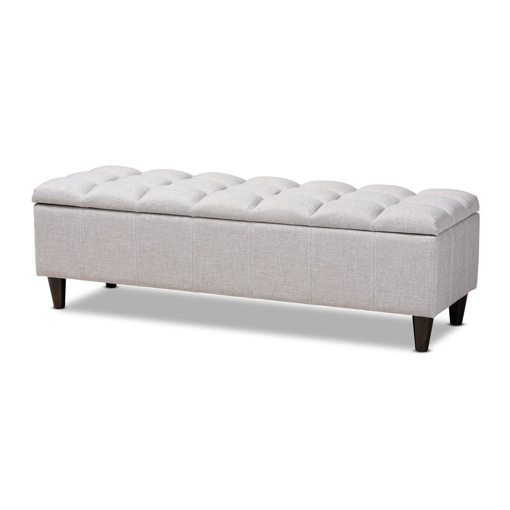 Baxton Studio Brette Mid-Century Modern Grayish Beige Fabric Upholstered Dark Brown Finished Wood Storage Bench Ottoman