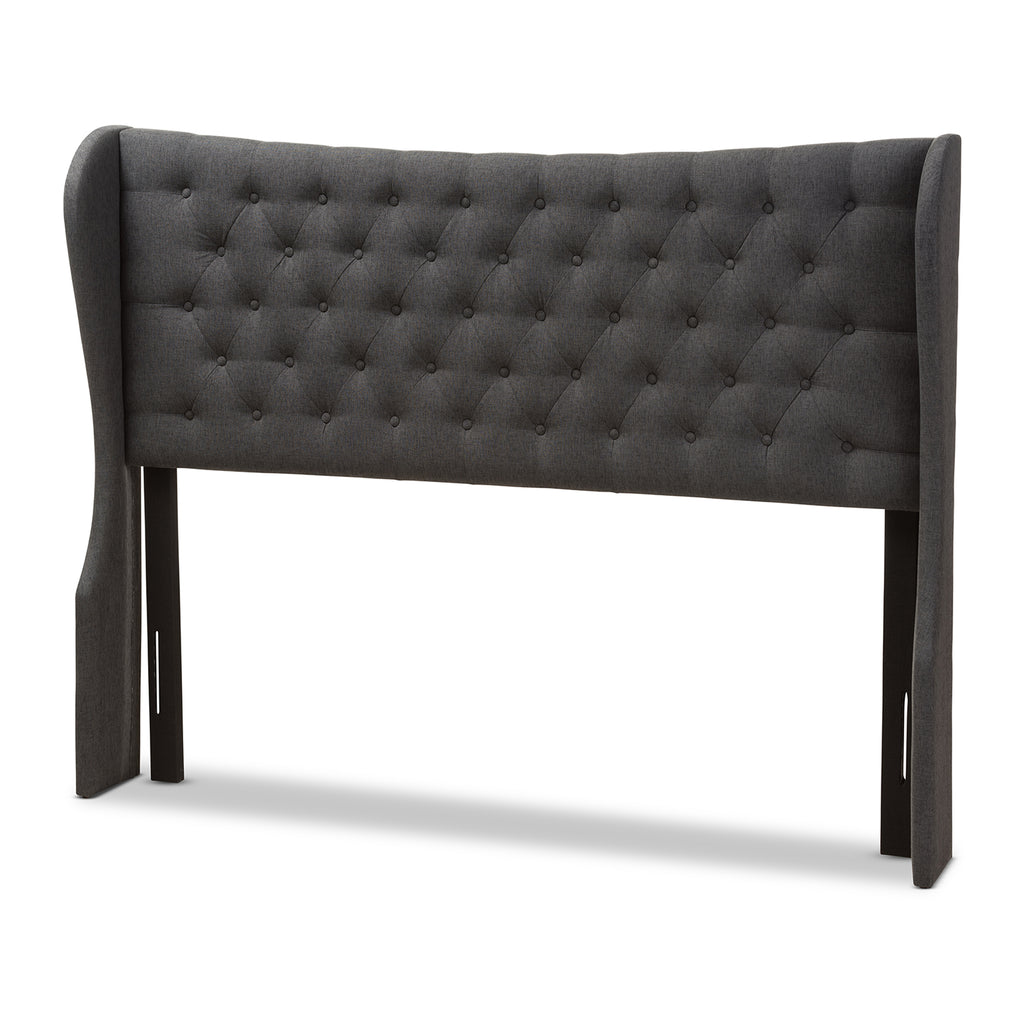 Baxton Studio Cadence Modern and Contemporary Dark Grey Fabric Button-Tufted Queen Size Winged Headboard