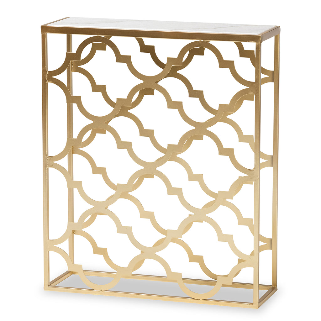 Give your home a luxurious character with the truly dazzling design of the Calanthe console table. Made in China, this stunning piece is comprised of a solid metal frame fitted with a marble tabletop. The frame features a striking quatrefoil design that exudes modern glamour while lending an open feel. The Calanthe will arrive fully assembled and features open sides that allow for extra storage space within the frame if desired. A fantastic display piece for the modern home, the Calanthe console table is sure to leave an impression.