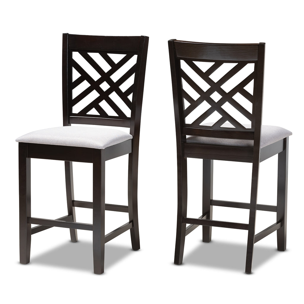 Redefine your dining space with the elegance and comfort of the Caron pub chair. This solid rubberwood chair features a sleek espresso brown finish that complements the light polyester fabric upholstery. Padded with foam for the highest level of dining comfort, the Caron features a stunning cut-out back for enhanced visual appeal. This stylish chair is suitable for use with pub tables and kitchen counters. The Caron pub chair is made in Malaysia and requires assembly.