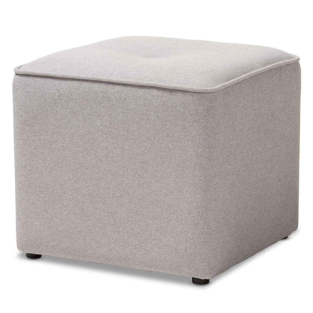 The Corinne ottoman's modern and contemporary-inspired style and compact size is perfect for any room, ranging from your livingroom to small spaces. Made of solid and engineered with foam padding, this tufted ottoman is built to last. The subtle piping design and light gray fabric upholstery adds versatility to the piece, making the Corinne easy to coordinate with your decor. This ottoman is easy to use as an accent piece, a place to put your feet up, or even auxiliary seating. Made in China, the Corinne comes fully assembled.