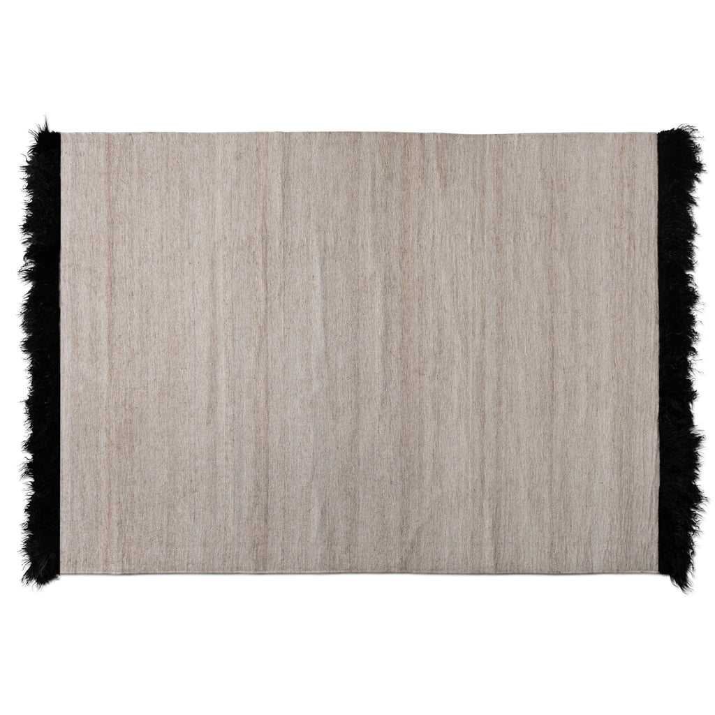 Refresh your home with the elegant minimalism of the Dalston rug. Handwoven in India, this rug is comprised of wool, viscose, and brisa hide. Shades of beige are framed by deep black for a stunning display that adds a modern touch to any room. The fluffy sides of the Dalston contrast with the smoother center to add texture and depth for an attention-grabbing display. An effortless way to add contemporary style to any space, the Dalston rug is an outstanding addition to the home.