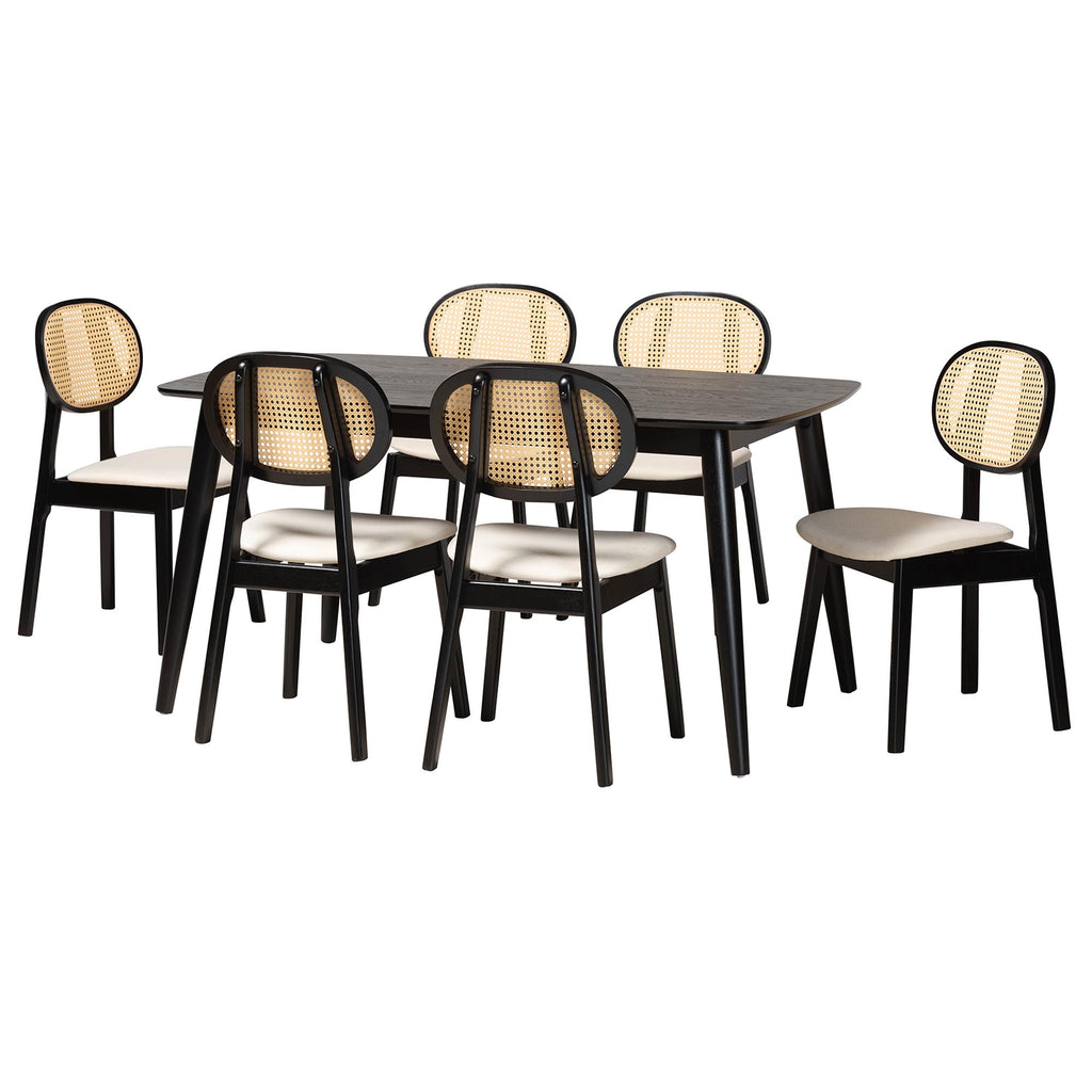 Baxton Studio Darrion Mid-Century Modern Cream Fabric and Black Finished Wood 7-Piece Dining Set