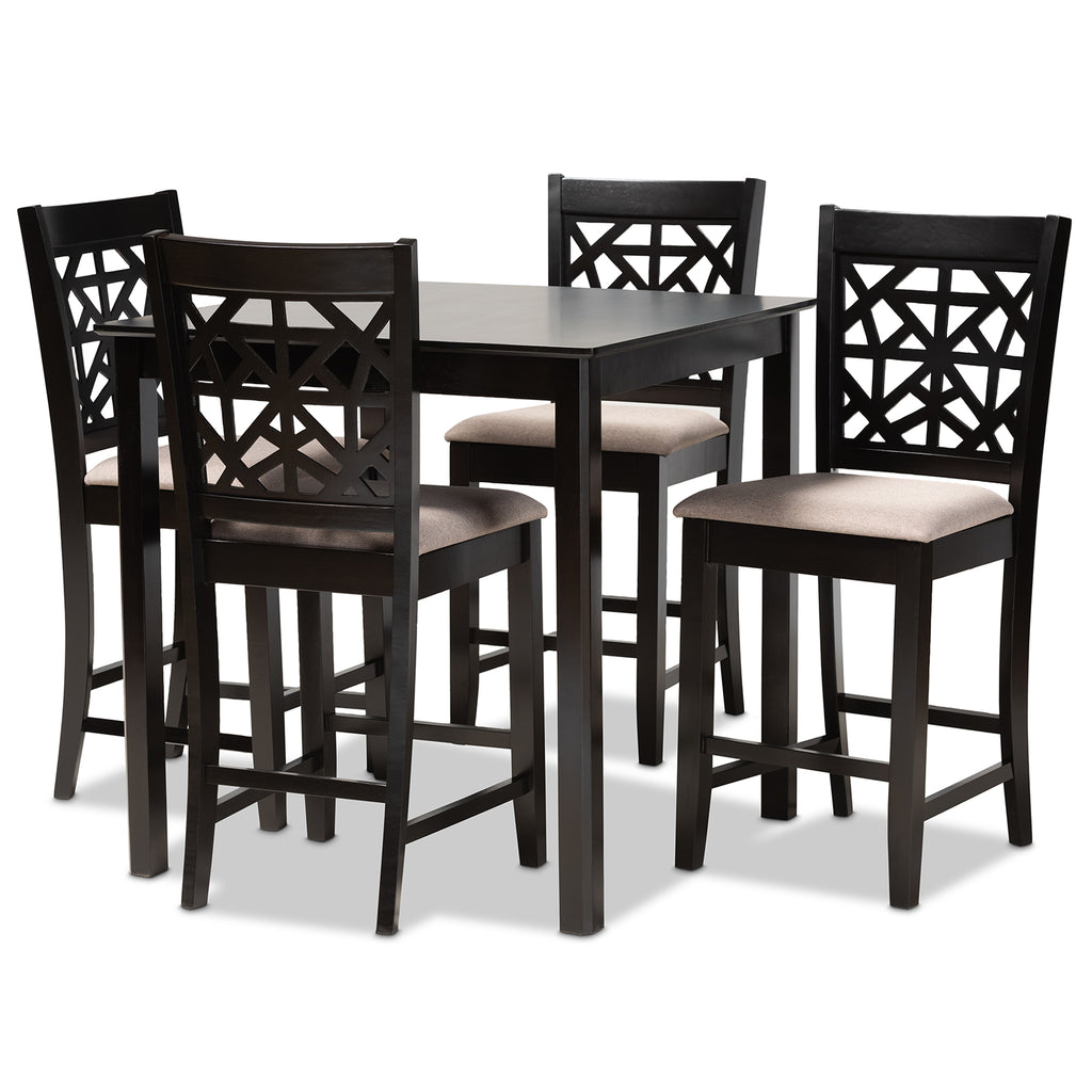 Baxton Studio Devon Modern and Contemporary Sand Fabric Upholstered and Espresso Brown Finished Wood 5-Piece Pub Dining Set