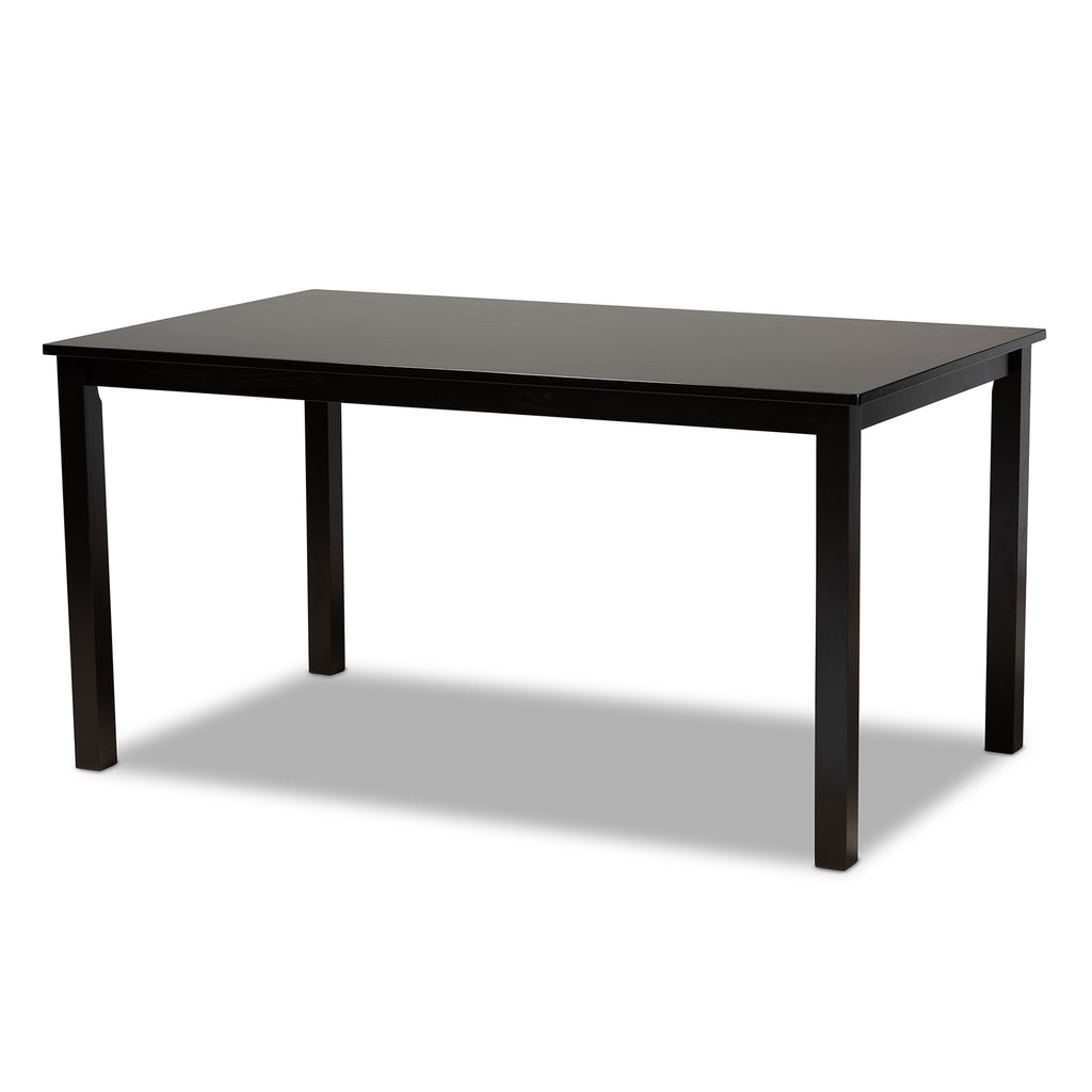 Anchor your dining room with the simple elegance of the Eveline dining table. Constructed from sturdy wood, the Eveline comfortably seats up to six. An espresso brown finish and rectangular tabletop give the table a sleek, contemporary look. Designed for versatility, the Eveline is well suited for both casual and formal dining. The Eveline dining table is made in Malaysia and requires assembly.