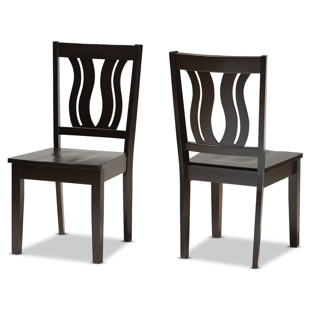 Featuring a unique, visually striking design, the Fenton dining chair adds elegance to any dining space. Made in Malaysia, the Fenton is comprised of a sturdy wood frame showcasing a sleek dark brown finish. A smooth scoop seat provides a casual and comfortable dining experience. Requiring assembly, the backrest showcases a stunning geometric design for added visual appeal. An ideal combination of comfort and contemporary style, the Fenton dining chair elevates any dining experience.
