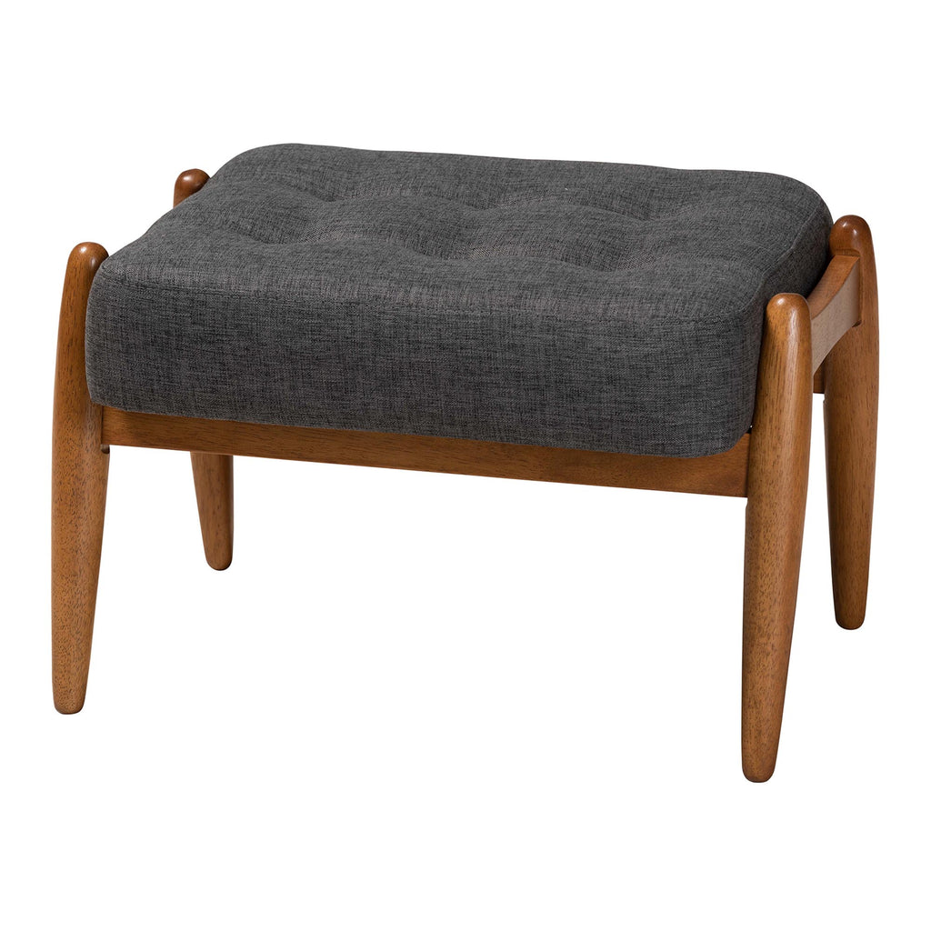 Baxton Studio Jeanine Japandi Dark Grey Fabric and Walnut Brown Finished Wood Ottoman Footstool