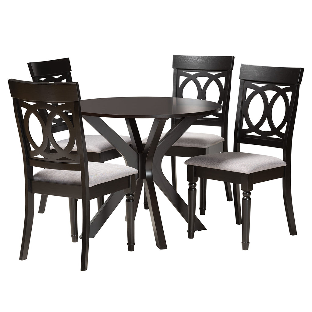 Baxton Studio Jessie Modern Grey Fabric and Dark Brown Finished Wood 5-Piece Dining Set