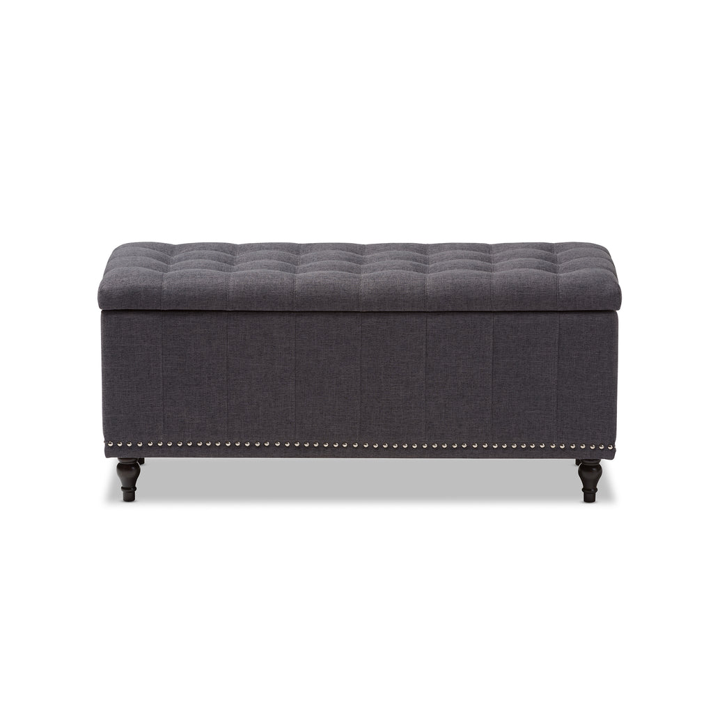 Baxton Studio Kaylee Modern Classic Dark Grey Fabric Upholstered Button-Tufting Storage Ottoman Bench