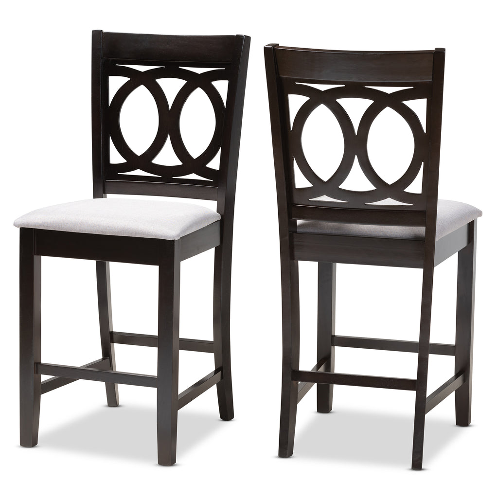 A fusion of traditional design elements and modern craftsmanship make the Lenoir pub chair a stunning addition to any dining space. This solid rubberwood chair features a sleek espresso brown finish that complements the light polyester fabric upholstery. Padded with foam for the utmost comfort as you enjoy long dinners, the Lenoir features a striking cut-out back for enhanced visual appeal. Comfortable and stylish, the Lenoir is suitable for use with pub tables and kitchen counters. The Lenoir pub chair is made in Malaysia and requires assembly.