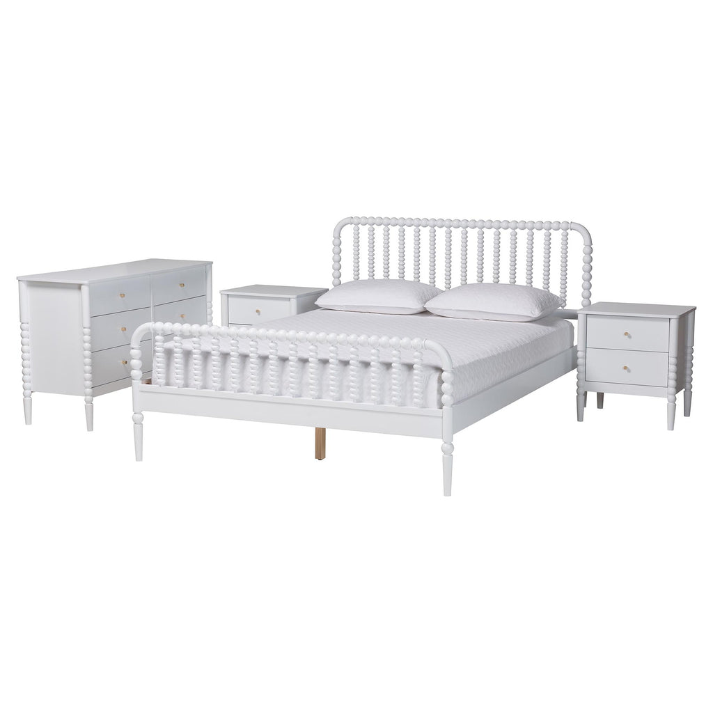 Baxton Studio Lucera Mid-Century White Queen Size 4-Piece Bobbin Bedroom Set