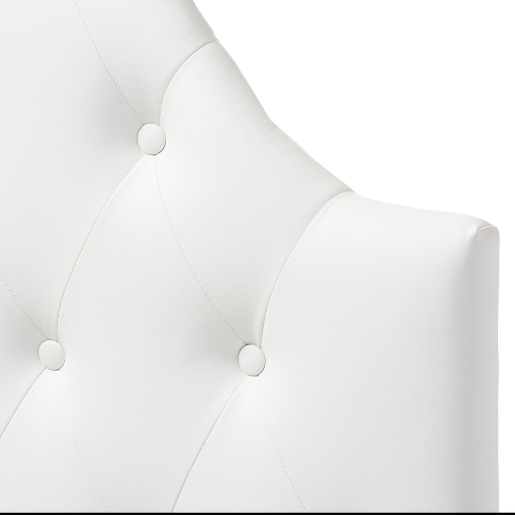 Clean, classic and graceful, the Morris upholstered headboard will imbue your bedroom with a calming energy. Twin upholstered in white faux leather that's durable and easy to maintain, the Morris headboard is practical for every days' use. The Morris features quality hardwood and plywood for stability and strength. The curved shape cushioned headboard will stand out in your bedroom with its button-tufted design. Supporting the headboard is the adjustable legs on two sides with pre-drilled holes built in for your preferred height matching the height of your box spring and mattress. The classic look of the Morris will work well with all of your bedding ensembles. Built in Malaysia, the headboard requires assembly.