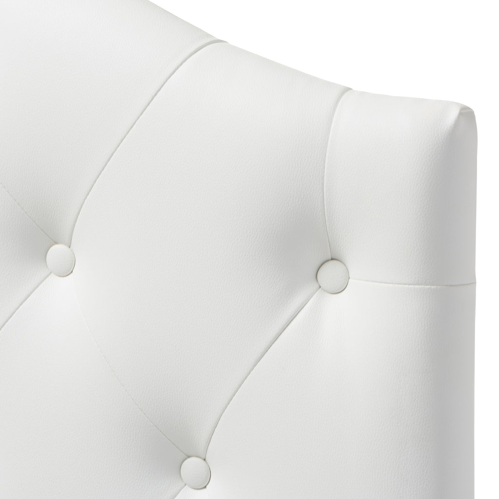 Add an accent of interest to your bedroom style with the Myra upholstered headboard. The headboard is twin upholstered in white faux leather for easy maintenance and every day’s use. Scalloped headboard frame with button-tufting design for a classic look while solid wood frame and leg supports for strength and sturdiness. Leg supports are invisible once set up and can be adjusted to suit the height of your ensemble for convenience. Headboard sits between the wall and the ensemble frame, attaching not to the bed base but to the legs, for stability. Cushion layer for softness and comfort. Made in Malaysia, the headboard requires assembly.