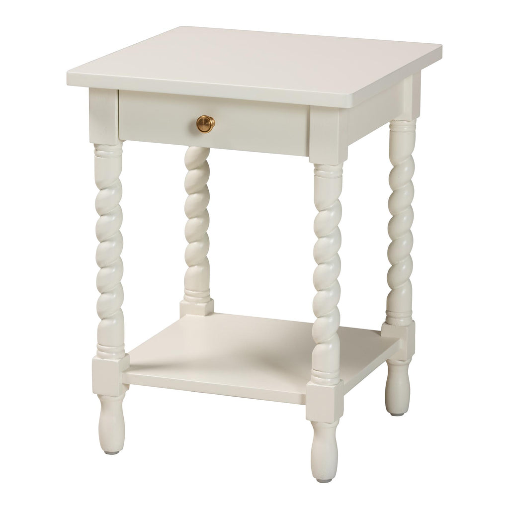 Refreshing yet classic character permeates your bedroom through the lovely Niklas nightstand. Made in Indonesia, this timeless piece is crafted from sturdy wood. The drawer and open shelf offer space to organize bedroom essentials while reserving the tabletop for nightly use. The Niklas will arrive fully assembled and features turned, twisted legs for an elegant display the showcases the tactful craftsmanship employed in creating the piece. Adorned with a round drawer pull, the Niklas nightstand is emblematic of enduring beauty.