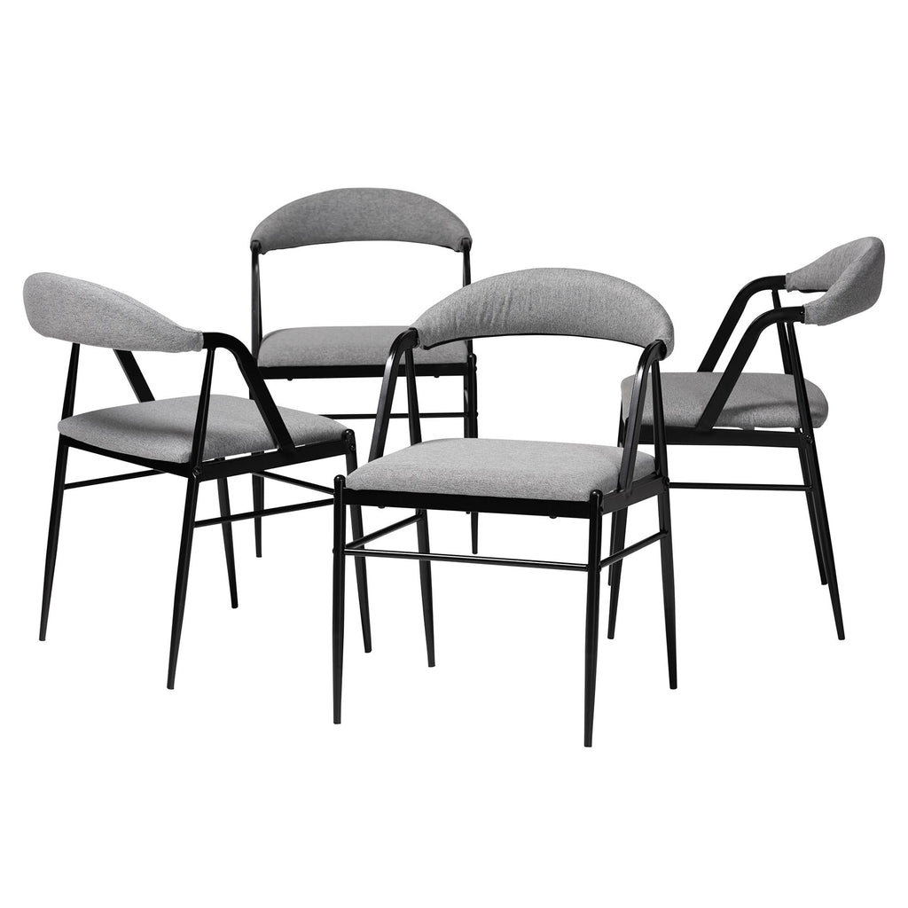 Craft a scene of contemporary bliss in your space with the stunning Orrin dining chair. Beautifully fashioned in China, this industrial inspired piece consists of a solid metal frame upholstered in cozy fabric. The smooth backrest gently curves around the frame, forming convenient armrests to encourage an air of ease. The Orrin requires assembly and utilizes tapered legs for excellent stability and support in streamlined design. Combining comfort with minimalist flair, the Orrin dining chair uplifts any arrangement.