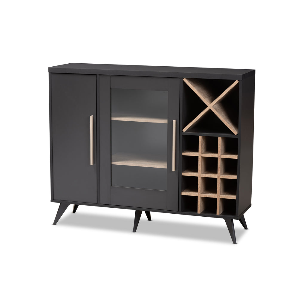 Wine bottle organization has never been easier than with the Pietro wine cabinet. Constructed from durable engineered wood, the Pietro will be a fixture in your space for years to come. The cabinet features a built-in wine rack that can accommodate storage for 24 bottles of wine. Five shelves, behind a wooden door and glass door, provide additional storage for wine bottles and stemware. The Pietro wine cabinet is made in Malaysia and requires assembly.