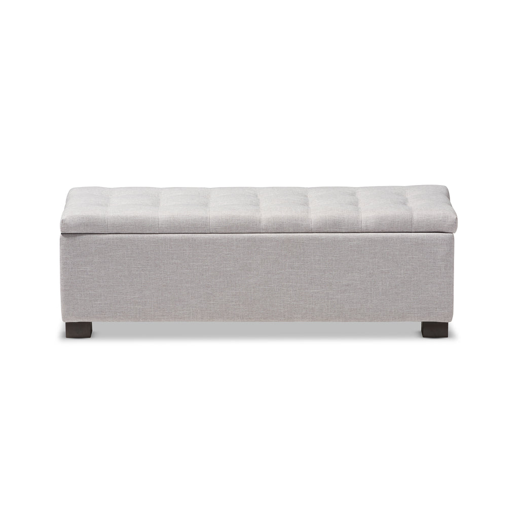 Baxton Studio Roanoke Modern and Contemporary Grayish Beige Fabric Upholstered Grid-Tufting Storage Ottoman Bench