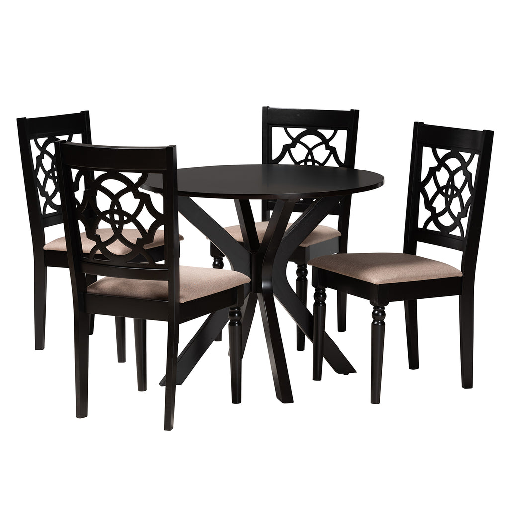 Elegant design marries quality craftsmanship in the Sadie dining set. Made in Malaysia, this modern set includes four chairs and one table crafted from sturdy wood. Each chair features a plush foam-padded seat, as well as an exquisite cut-out design on its back. The Sadie requires assembly and features a circular tabletop with smooth edges that provide superb space for each member of the table. Turned legs add a classic, refined touch, making the Sadie dining set a remarkable centerpiece of any arrangement.