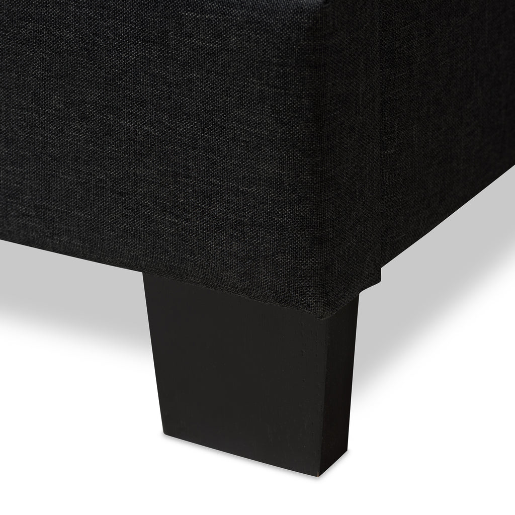 Stay and in with the Brookfield full size bed, designed in modern and contemporary style with dark charcoal grey fabric upholstery. Crafted with both style and character, this panel bed frame features a stylish grid-tufting design that can accommodate a king size mattress. Fitted with solid wood legs in black, the Brookfield provides stability and a chic headrest.