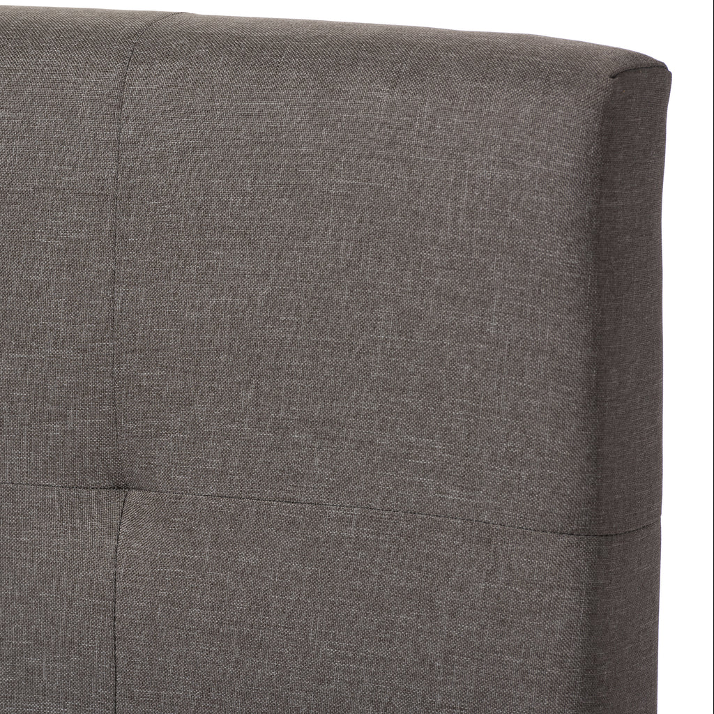 With this Brookfield modern and contemporary grey fabric upholstered grid-tufting queen size bed. the bed features stylish grid-tufting design which can accommodate a queen sized mattress. Fitted with solid wood legs in black, the Brookfield provides stability. The entire headrest has been upholstered in high quality grey polyester fabric while grid-tufting design gives the piece a touch of sophistication. You'll love having this inside your bedroom. It offers a touch of delicate retro flavor. The Brookfield requires assembly.