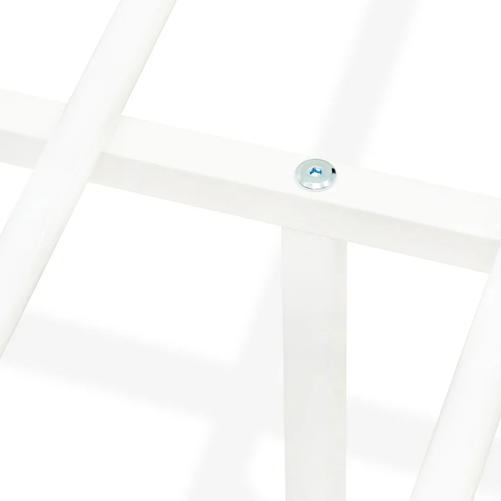 This lavish canopy queen bed frame makes an eye-catching addition to any bedroom. We constructed this metal frame using a metal structure for strength and safety design. Strong frame and manufacturing experience can avoid noise, vibration, and scratches. This magnificently crafted piece is made with an attractive finish to add an attractive touch to any bedroom. A sturdy and well-refined bed frame is finished in Powder Coating White. Classic modern design can go with any interior decoration so that you can relax more ably. Our queen bedframe will help to make any master bedroom lavish and take to a whole new level with . The queen canopy bed frame offers sufficient space for storage boxes, clothes, etc. The standard large base is high enough for most mattresses. Simply with a mattress, you will enjoy a night of sweet . No spring box is needed. Our canopy bed comes with all the parts and tools needed for assembly. Assembly steps are listed in the instruction manual and are easy to follow. This queen size metal bed frame is simple to clean along with a damped cloth because of its smooth finish.