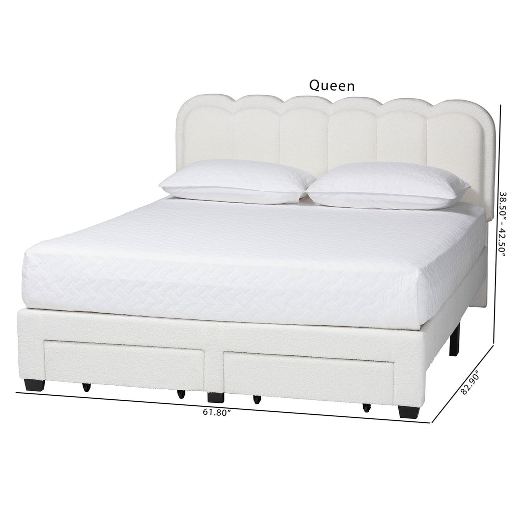 Experience blissful relaxation and exceptional versatility with the exquisite Caradonna storage bed. Crafted in Malaysia, this contemporary piece features a robust wooden frame that is cushioned with soft foam and covered in luxuriously plush teddy-bear fabric. The channel-tufted headboard and scalloped design provide an elegant silhouette, while two rolling drawers beneath the platform offer convenient storage solutions. The Caradonna requires assembly and incorporates wooden slats for mattress support, thus negating the necessity for a box spring. Skillfully embracing minimalist design while addressing your requirements, the Caradonna storage bed serves as a stunning focal point in any bedroom.