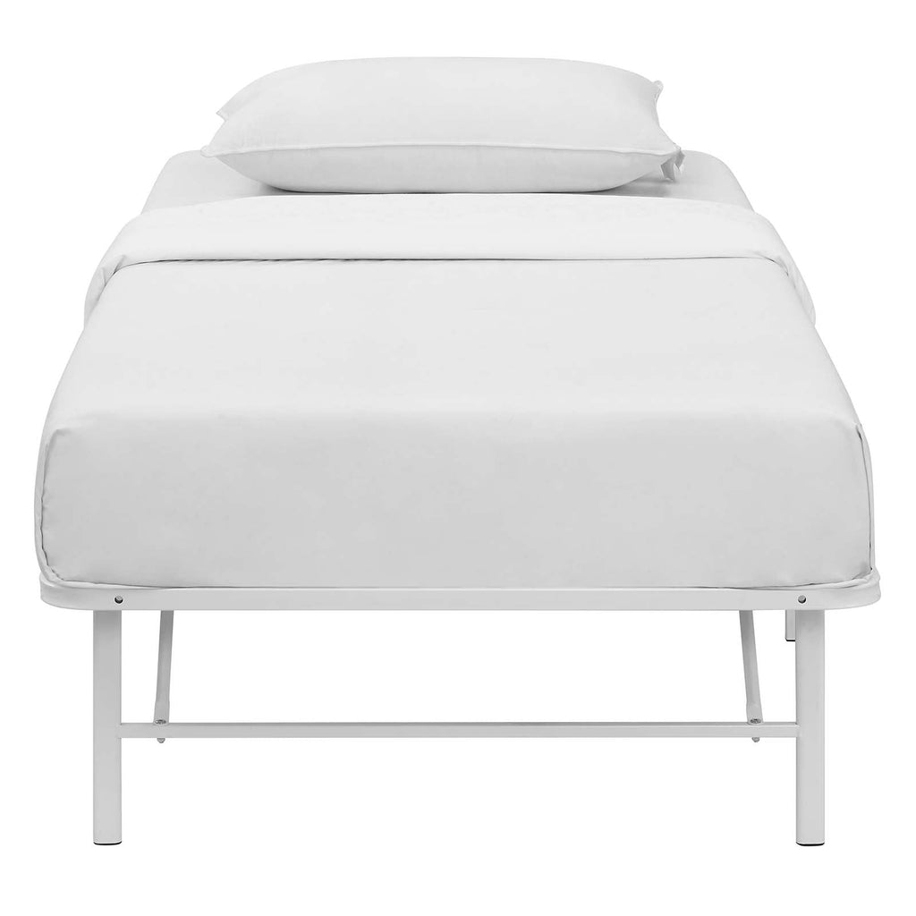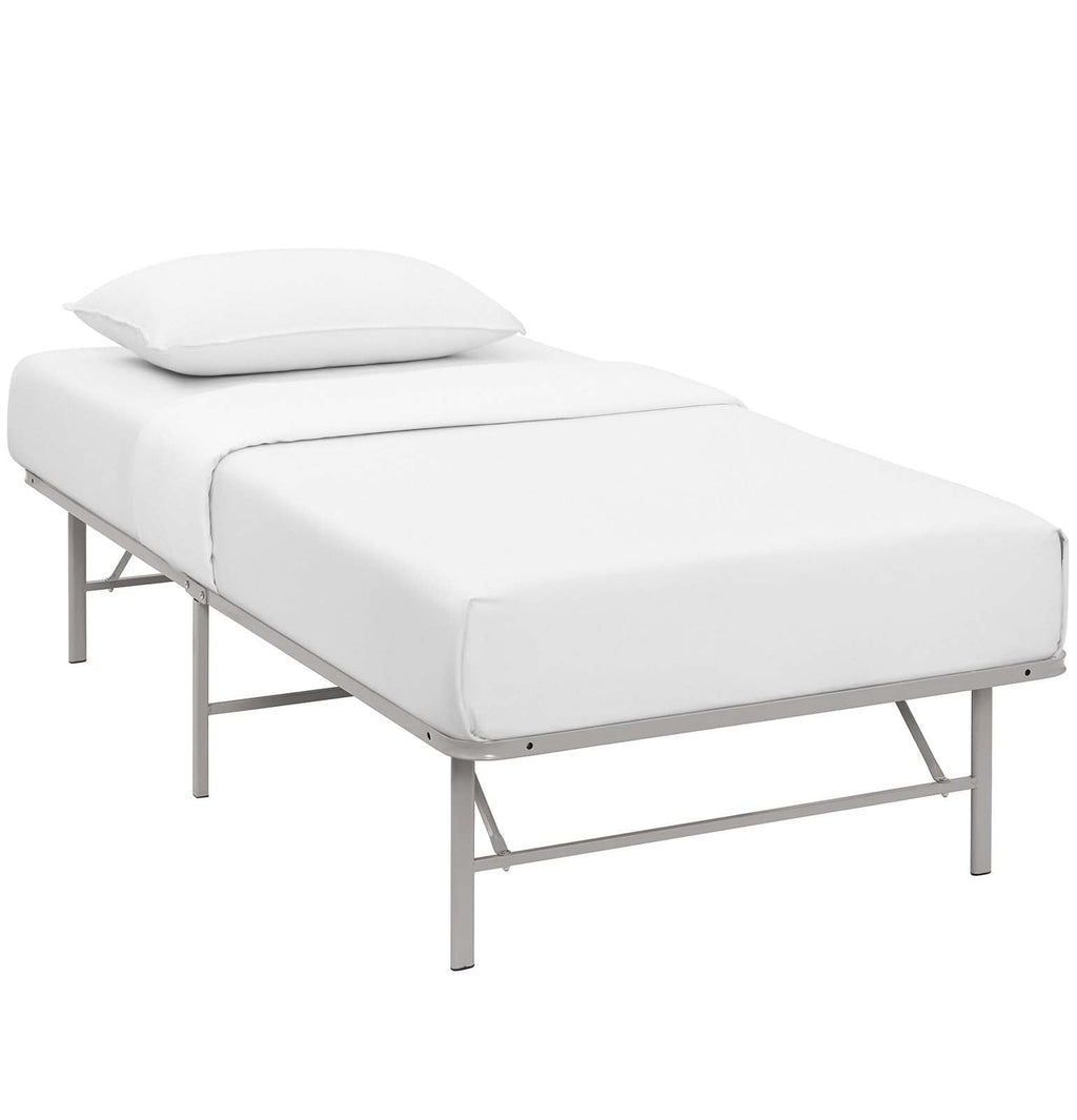 Horizon Metal Bed Frame. Horizon is made with a reinforced stainless steel metal base for long-term and uses with a generous 14 inches of space underneath to store hobby collections or seasonable clothing bins. Horizon comfortably supports up to 1300 lbs, easily folds away when not in use, and eliminates the need for a box spring with its heavy duty platform frame construction. Complete with non-marking foot caps to keep your carpets and floor safe, Horizon is a low profile modern bed frame that supports the standard mattress types on the market: memory foam, spring, latex or hybrids. Available in twin, full, or queen, Horizon reduces annoying squeaks and unpleasant bending or buckling, while transforming your home décor with a selection of stylish color options. Designed to provide lasting support for years to come, Horizon prevents saggy mattresses and increases the mattress lifespan while delivering a better-made bed frame solution for your home. No tools required. Mattress not included.