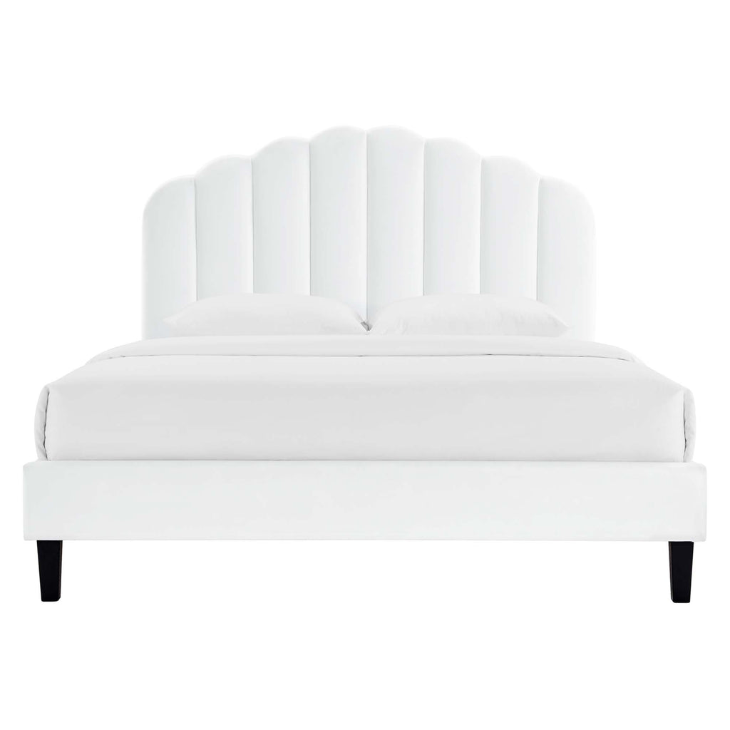Claim the subtle in a teenager's bedroom or guest room with the Daisy Channel Tufted Performance Velvet Full Platform Bed. With a whimsical profile, this full bed features vertical channel tufting and scalloped edge to present style in the bedroom. The padded full headboard and side rails come covered in soft, stain-resistant performance velvet upholstery that grants texture to the design. Resting atop tapered black wood legs, this platform bed frame crafted with MDF and LVL is a sturdy mattress foundation for memory foam, innerspring, latex, and hybrid mattresses. With supporting legs and a reinforced center beam, this upholstered bed is complete with a poplar wood slat support system. Mattress not included. Assembly required. Full Bed Weight Capacity: 800 lbs.