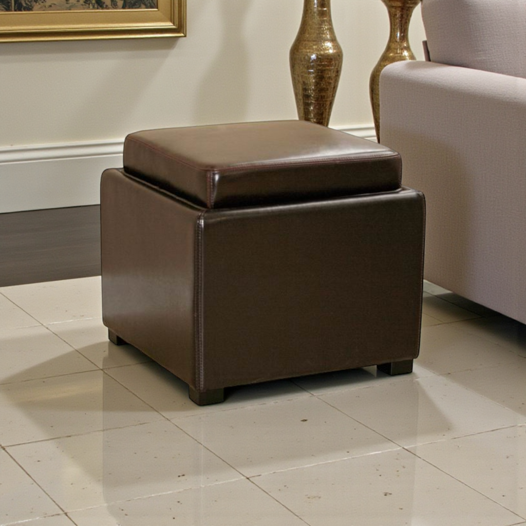 - Leather storage ottoman