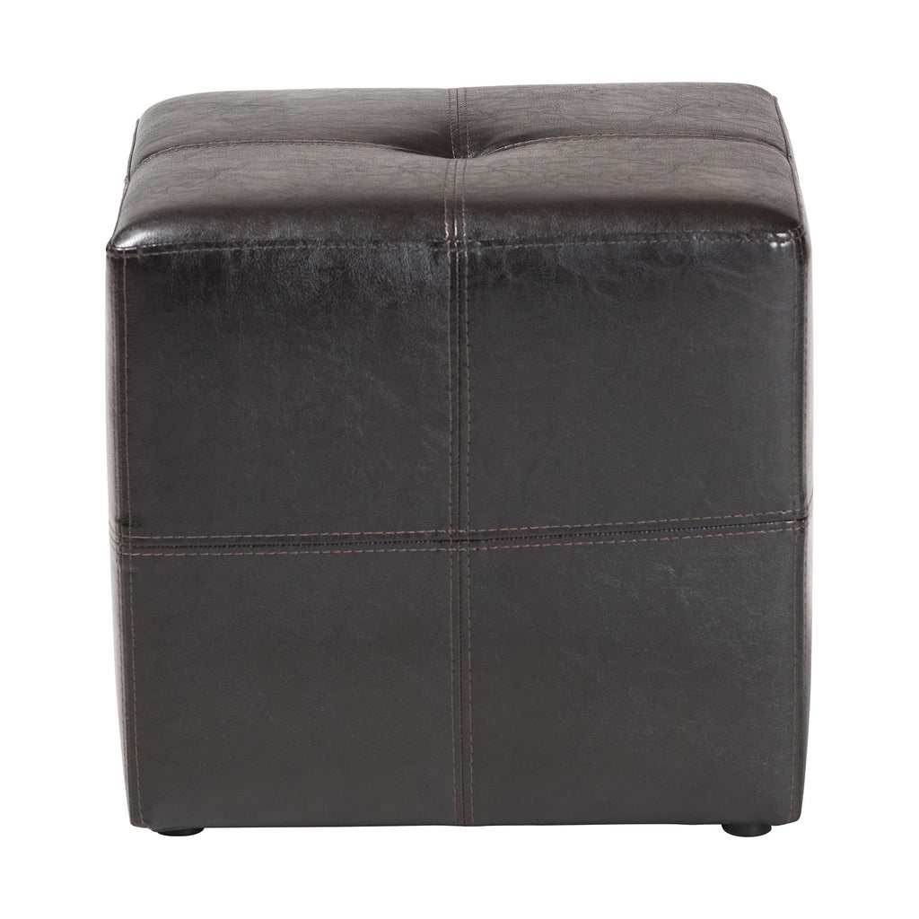 This compact yet durable cube ottoman will enhance your living area with a sleek and elegant appearance. Featuring bonded leather panels that are stitched together for a touch of style, this ottoman serves multiple purposes, exemplifying excellent design. It is robust enough to function as a footrest and sufficiently sturdy to be used as additional seating.