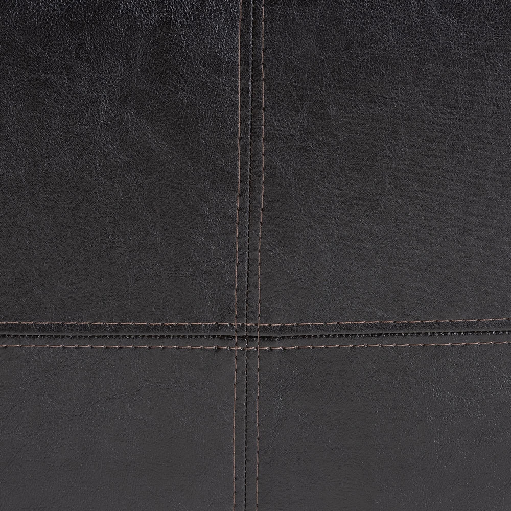 - Individual leather panels stitched together create a square design on all sides