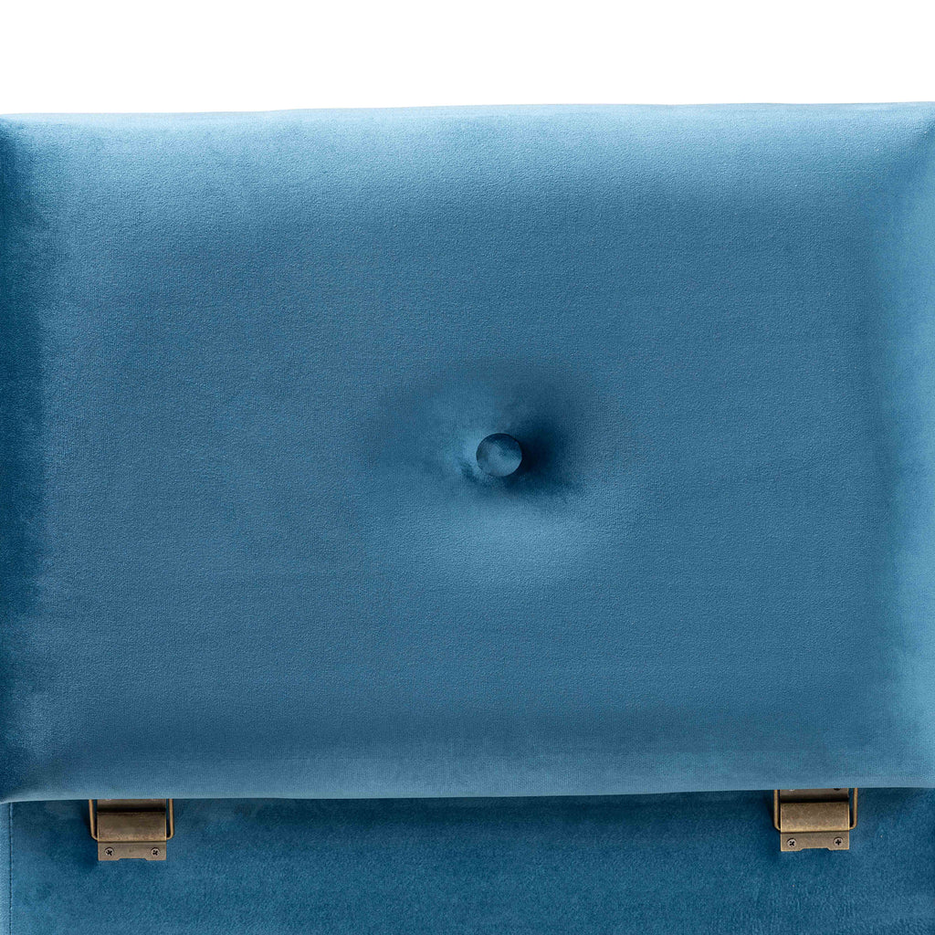 Accent your space with the seating and handy storage of the Elias ottoman. Made in China, the Elias is comprised of a sturdy wood frame padded with foam and upholstered in smooth velvet fabric. Its lift up top reveals storage space for extra blankets and linens. Requiring assembly, the Elias sits on tapered, oak finished wood legs for a chic, modern look. Button tufting and antique brass finished metal latches lend an touch, making the Elias ottoman a distinctive addition to any space.