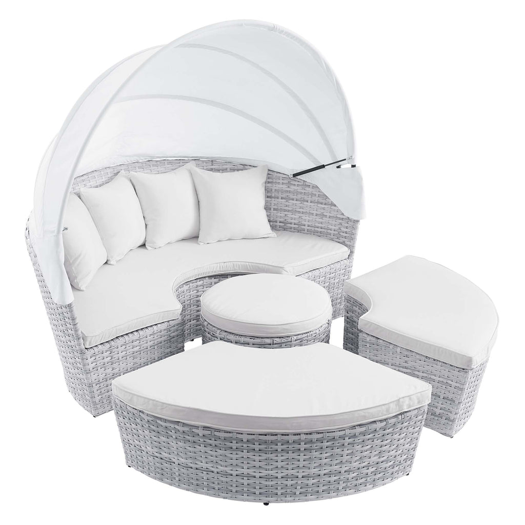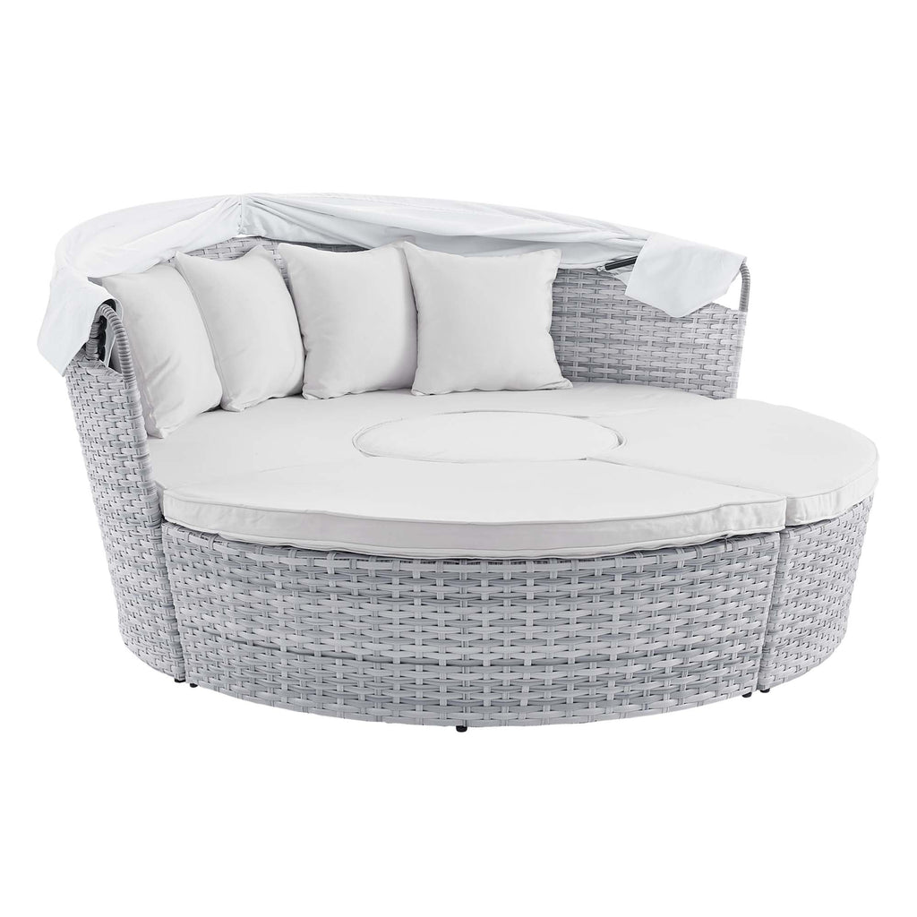Featuring a sturdy powder-coated aluminum frame that can withstand the elements, this daybed is wrapped in UV-resistant synthetic rattan and features a collapsible sun canopy to provide shade during your outdoor leisure time. This chic daybed bed is the choice for the poolside, backyard, deck, or outdoor patio, boasting a weight capacity of 771 lbs.