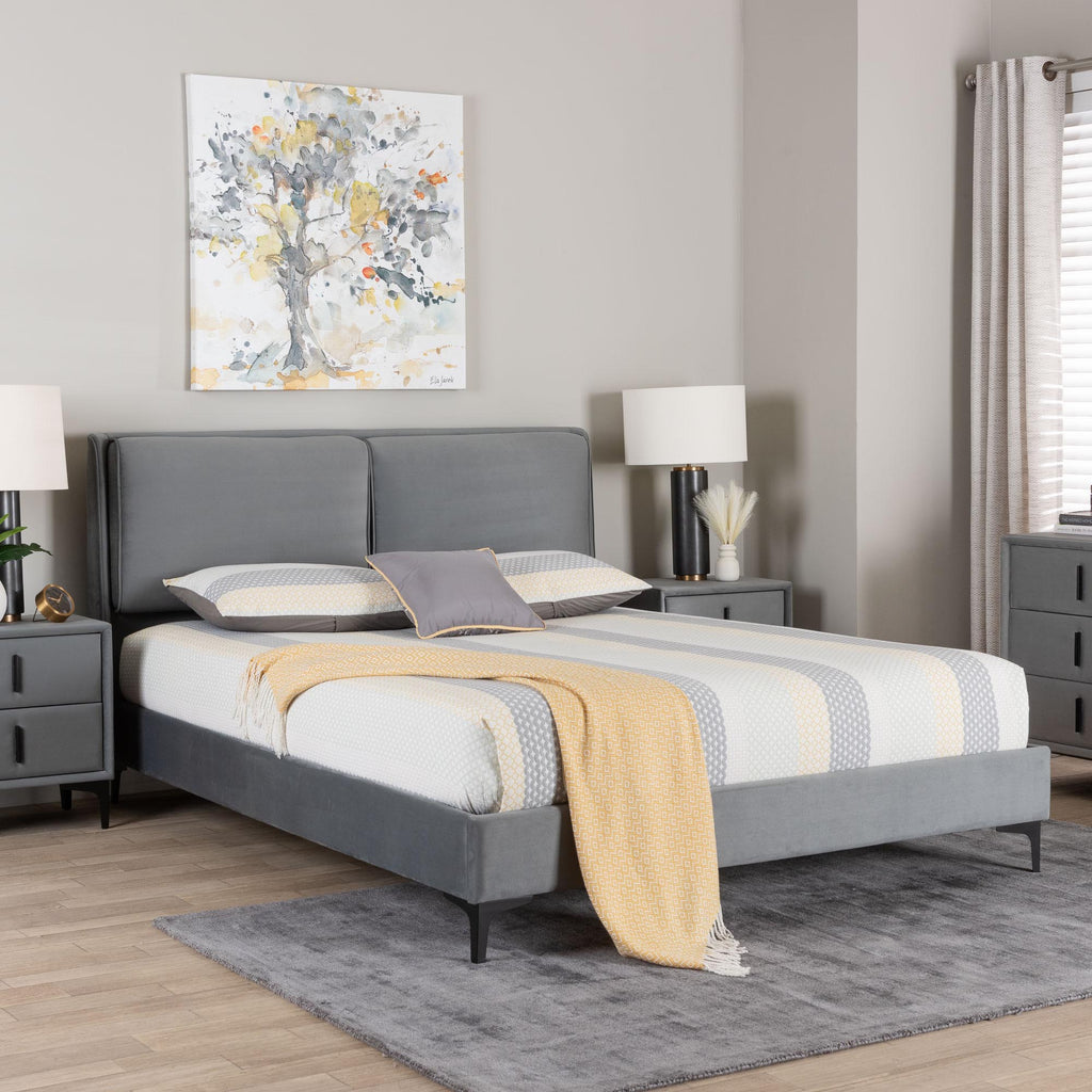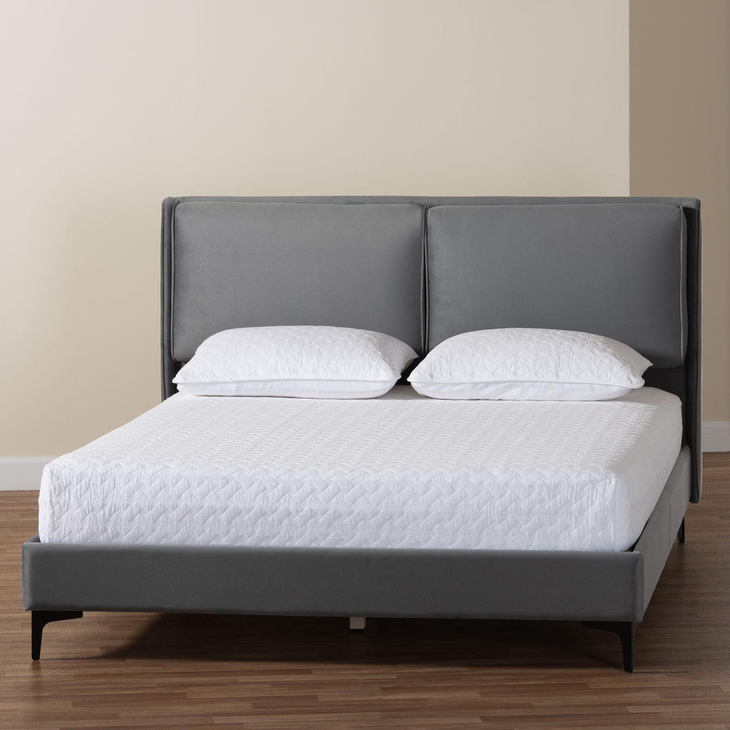 The lush composure of the Etienne platform bed creates a cozy oasis for your bedroom. Made in , this modern piece consists of a sturdy wood frame padded with plush layers of foam and upholstered in lavish velvet fabric. The sumptuous pillows of the headboard offer unmatched ease while elegant piping lends timeless charm. The Etienne requires assembly and utilizes wood slats for mattress support, eliminating the need for a box spring. Minimalist metal legs lend a sleek outline, making the Etienne platform bed a beautiful bedroom centerpiece.