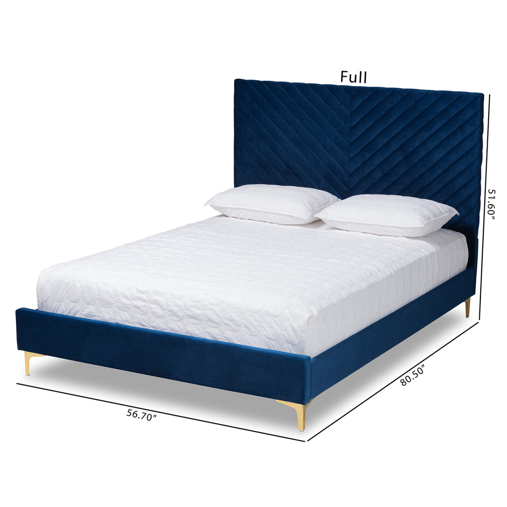 Drift off to in magnificent fashion with the refined elegance of the Fabrico platform bed. Made in , this chic piece consists of a solid wood frame padded with foam and upholstered in lavish velvet fabric for a truly embrace. The tall headboard features a sleek chevron tufted design for a striking display that provides superb back support when sitting in bed. The Fabrico requires assembly and utilizes wood slats for mattress support, removing the need for a box spring. Polished metal legs complete the opulent design, making the Fabrico platform bed a fantastic upgrade to the modern bedroom.