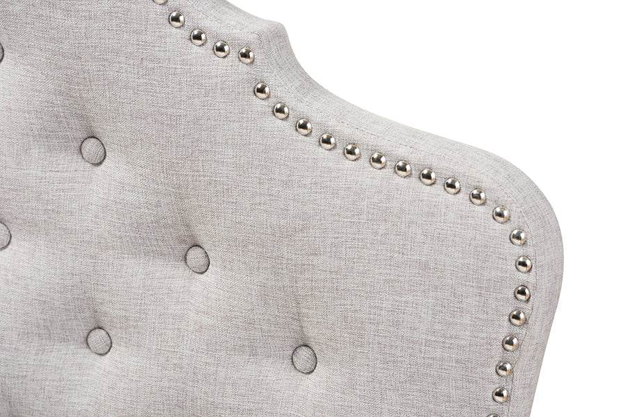 Complete your bedroom interior with the Hilda fabric upholstered headboard. Constructed of solid rubberwood and MDF, the Hilda headboard is upholstered in greyish beige or dark grey fabric. Featuring a curvaceous design with silver nail heads trim and button-tufting design for a look, the Hilda offers a touch of modern sophistication. The mounting wood post is made from rubberwood for and strength. Cushioned headboard provides softness and shape, allowing you to rest ably. the Hilda requires assembly.