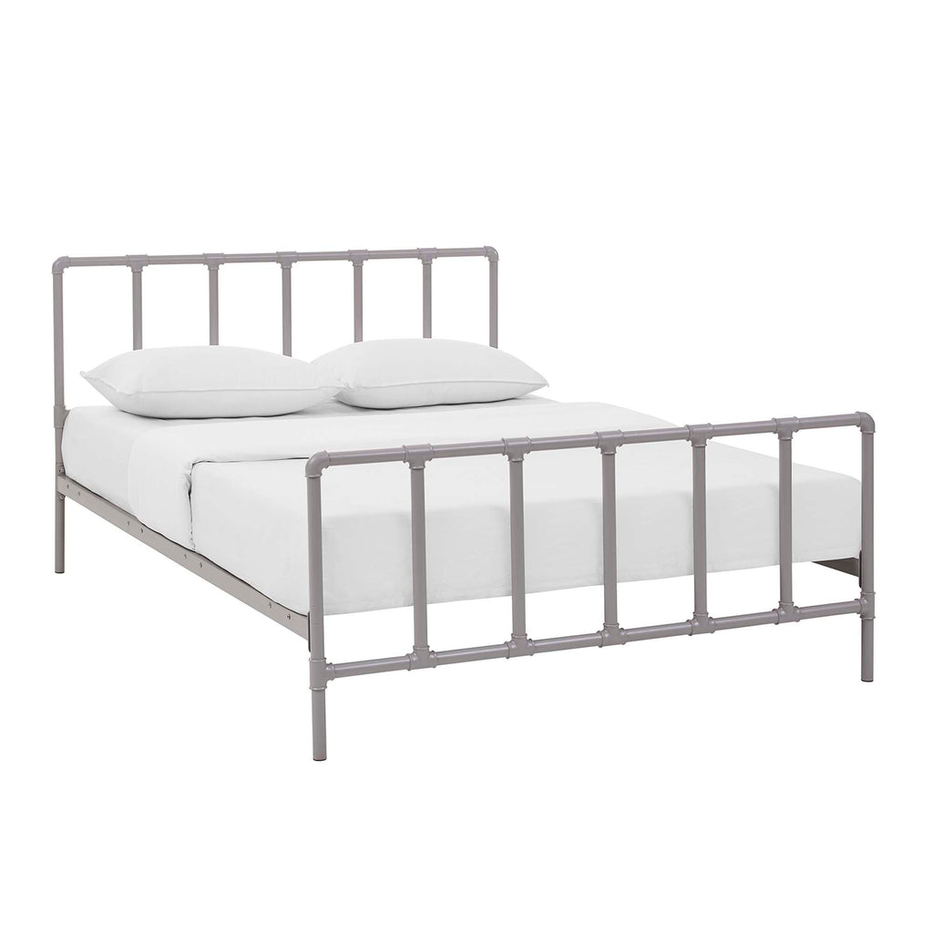 Introducing the Dower Platform Bed Frame, a beautifully crafted piece that will enhance any bedroom! This queen platform bed features industrial vintage-style steel piping and sockets, giving it a solid and sturdy build. With a reinforced center beam and an integrated headboard and footboard design, it provides both style and support. The non-marking foot caps help protect your floors, too!