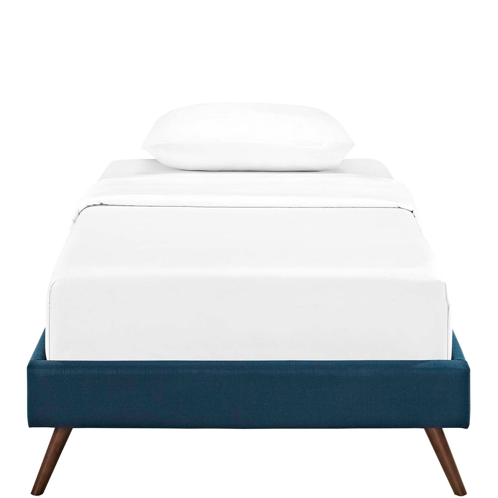 Accelerate your bedroom decor with the Loryn Platform Bed. Made with a solid wood frame upholstered in polyester fabric, Loryn features tapered wood legs, plastic foot glides, ten sturdy wood slats with a centered supporting bar and two support legs. Due to the wooden slat support system, the use of a box spring is unnecessary. Loryn supports memory foam mattresses such as our Aveline series, and is compatible with one of our headboard styles: Jessamine, Terisa, Laura, Phoebe, Camille, and Josie. Perfect for mid-century modern, minimalist and contemporary bedrooms. Mattress not included.