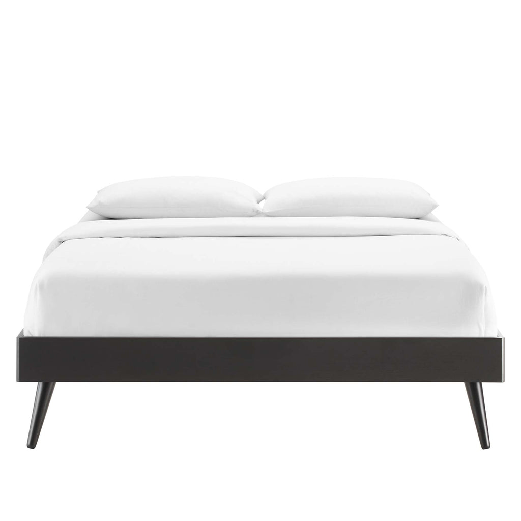 Incorporate modern style in the bedroom with the Margo Queen Platform Bed. Inspired by mid-century design, this queen size bed frame boasts retro detail with contemporary accents and organic aesthetics to bring trending modernity to your master bedroom or guest room. Adapting to any decor theme with the option of interchangeable headboards, this bed frame is compatible with the Robbie, Draper, Archie, and Collins headboard collections. This platform bed frame is a sturdy addition to the bedroom, MDF, and veneer construction and four splayed rubberwood legs. Eliminating the need for a box spring, this queen bed is complete with a wood slat support system, reinforced center beam, and supporting legs that make it a lasting mattress foundation for memory foam, latex, innerspring, and hybrid mattresses. Assembly required. Queen Bed Frame Weight Capacity: 601 lbs.