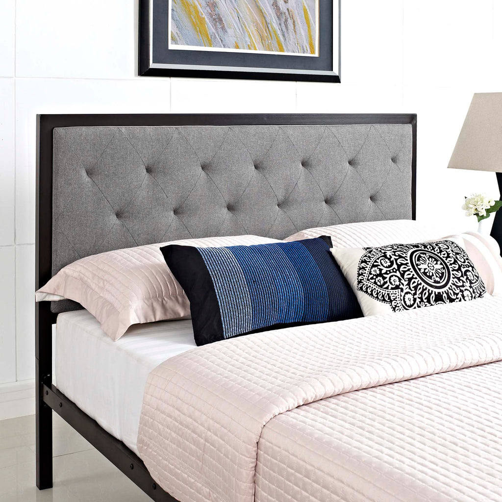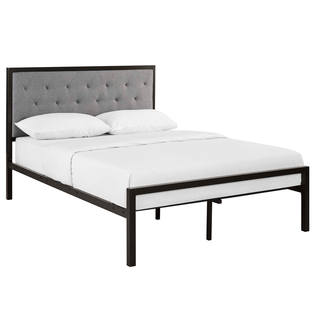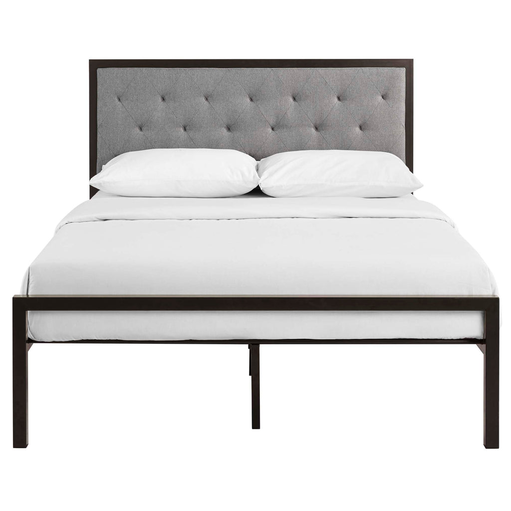 Sleep peacefully with a platform bed solid in both style and construction. Mia comes with a powder-coated steel frame that offers sturdy and long-lasting support, while the fabric headboard with deep tufted buttons adds a touch of magnificence to an otherwise minimalist design. The Mia Platform Full Bed does not require a box spring. Full mattress not included.