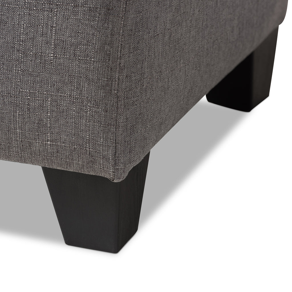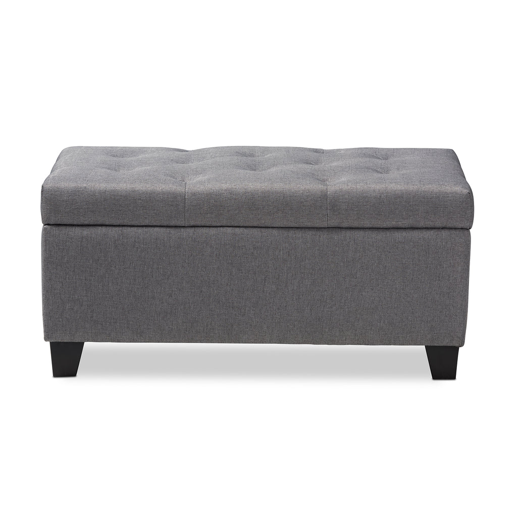 Cute, sturdy, and practical, the Michaela storage ottoman can meet a wide range of your organization needs. The modern and contemporary-inspired design emphasizes simplicity and neutral colors. The Michaela is upholstered in a pleasant grey fabric, with a foam-padded, button-tufted lid. The ottoman features a storage compartment under the lid, made secure with a spring hinge. The Michaela has black finished polymer feet, and can fit easily in many areas. Use this storage ottoman at the edge of a bed, as storage in the guest room, a place for shoes or toys in your entryway - wherever needs to be more tidy! The Michaela requires minimal assembly - all you need to do is attach the feet.