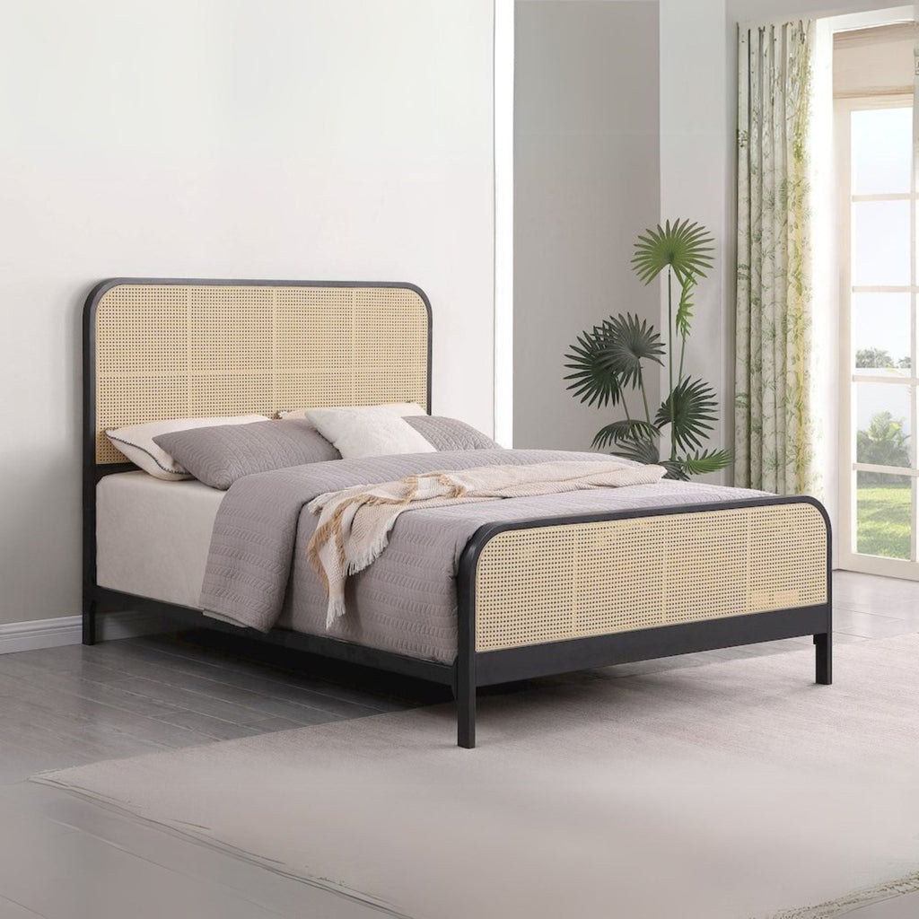 - Woven open cane weave on the headboard and footboard for added style