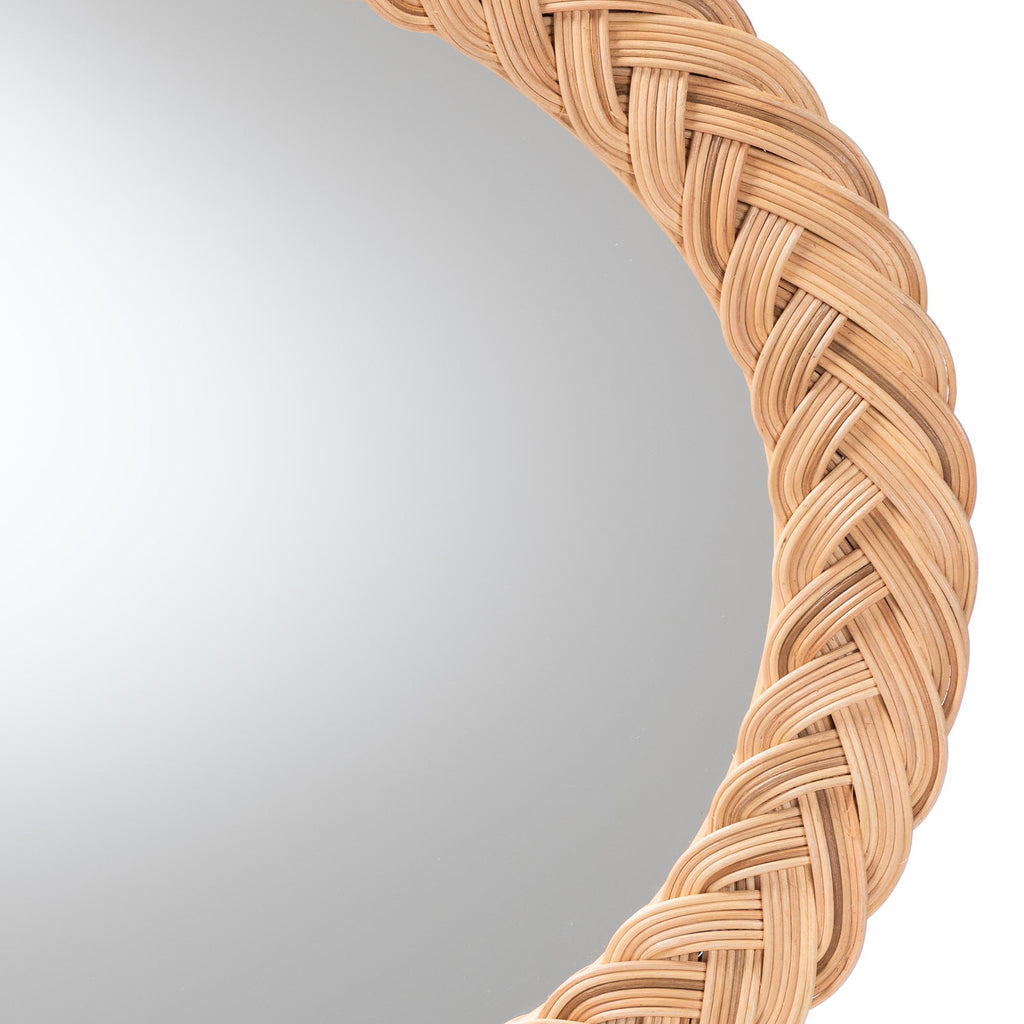 Elevate the mood of any interior to one of serene warmth with the lovely Nara accent mirror. , this bohemian piece is handcrafted from sustainably sourced natural rattan. Its oval silhouette lends a bold presentation that draws attention to the intricately braided rattan bands that adorn the piece with rich geometric flair. The Nara will arrive fully assembled and is wall mountable. Imbued with exotic grace, the Nara accent mirror uplifts any interior environment.